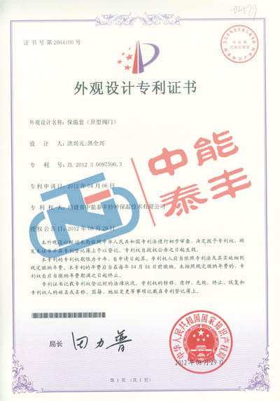 保溫套(異形閥門)專利證書