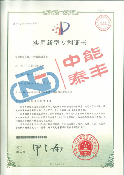 一種玻璃鋼井蓋專利證書