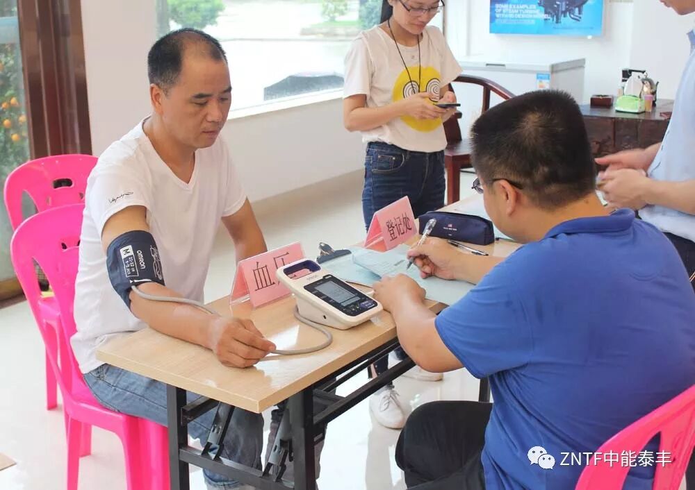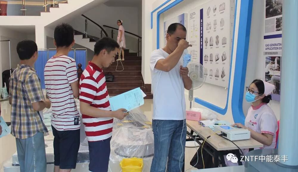 為保障員工身體健康,幫助員工全面了解自身健康狀況,增強(qiáng)員工體質(zhì),提高員工整體健康水平。福建省中能泰豐節(jié)能環(huán)?萍加邢薰居6月23日下午,在公司展廳為全體一線員工進(jìn)行了一年一度的健康體檢。
